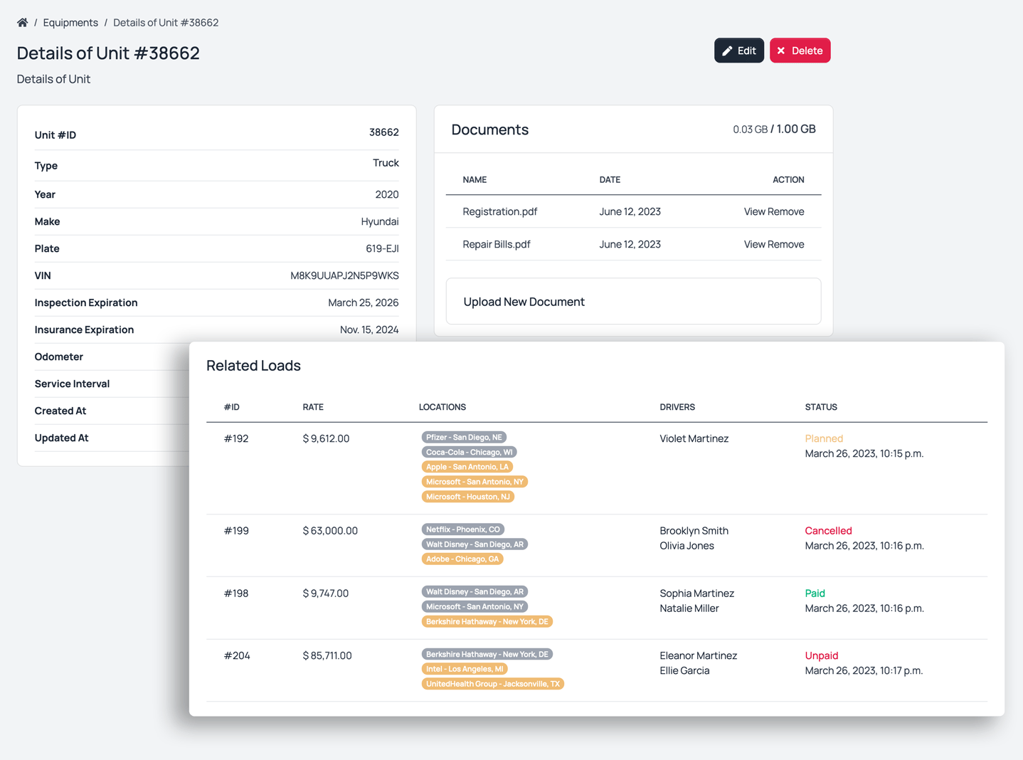 Manage all of your loads, invoices, payroll, shippers, brokers and more in one place quickly and efficiently. Loads flow from load entry all the way to billing and driver pay.